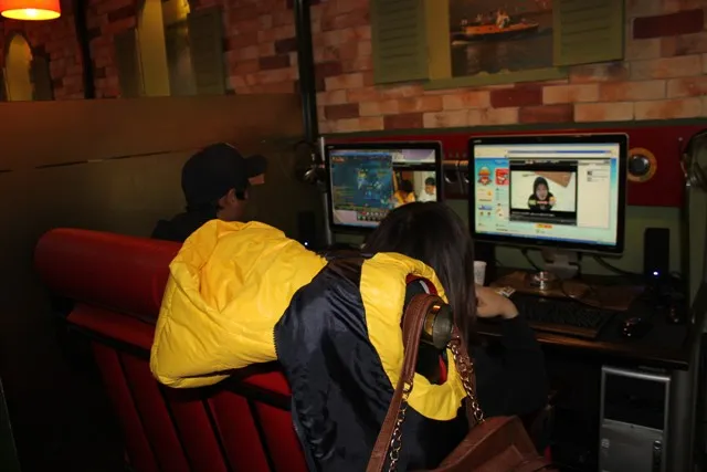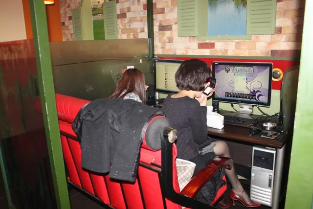 Есть индивидуальные кабинки, где играют парами, либо просто общаются через web-камеру.