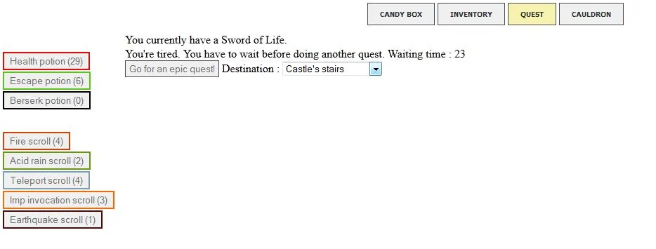 С первых же минут игры тебя не отпускает чувство ДеЖаВю. Разве что нет той гипнотической музыки, милого интерфейса и длинных текстов. Зато есть счетчик конфеток, тикающий в реальном времени и больше ничего. Пока. Потом вдруг на экране появляется торговец - забавная фигура, нарисованная в стиле ASCII арта. Вообще вся графика в игре выполнена в такой манере, но об этом позже. У него можно на набранные конфетки купить леденцов. А чуть погодя - зелья, свитки, мечи. А вот на экране появились три кнопочки: Candy Box, инвентарь и квесты. Собственно они отвечают именно за то, что на них написано. Сейчас нам интересны квесты. После первого пройденного квеста мы обязательно получим ключ от леденцовой фермы, на которой будем... Выращивать леденцы! И чем больше мы посадим - тем быстрее они будут расти.