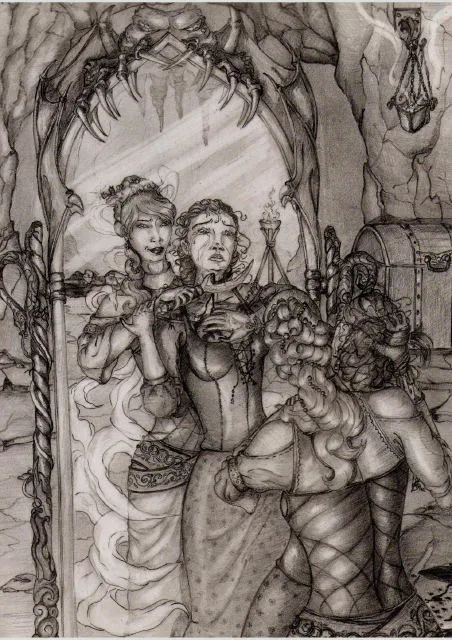 "Надо же - тоже рыжая!" - восхитилась королева, придирчиво осмотривая незнакомку. "А я ведь раньше ее никогда здесь не видела. Откуда она?"