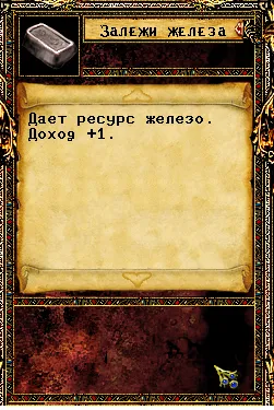 Железо встречается только в холмистых провинциях. Дает +1 золота. Данный ресурс просто необхолим игрокам которые играют от защиты, так как большество бронированных юнитов требуют его, так же он нужен для ряда магазинов. Ну и под конец металические изделия у торговцев тоже будут требовать наличие железа.