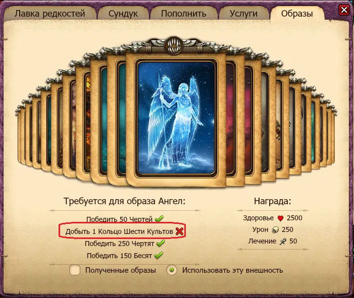 Бес, монстр из Армии Хаоса, до сих пор продолжается война... Бес сильный противник, он поджидает своих противников у островов, немногие могут противостоять ему. Характеристики: 250000 здоровья, 200 маны, 10000 урона, 20000 брони, удача - 40, ярость - 40, блок - 40. В случае победы, Бес отдаст свое сердце - "Сердце Демона", либо "Душу Бесенка". По мимо таких редких даров у него еще имеются "Культовые Кольца", и если посчастливится - он дарует "Кольцо Шести Культов". +405 опыта и 15 кристаллов