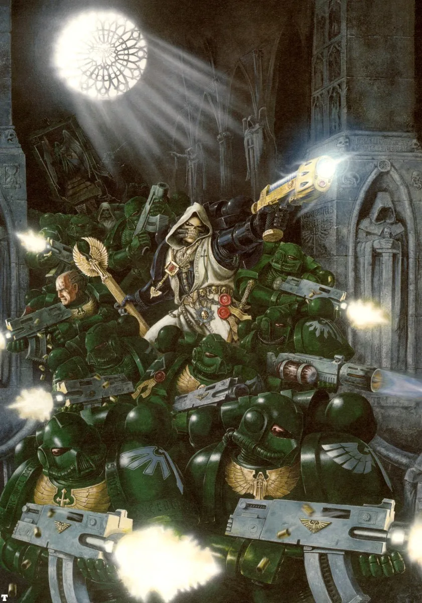 Тёмные Ангелы — одни из немногих космодесантников, носящих поверх доспеха мантии.