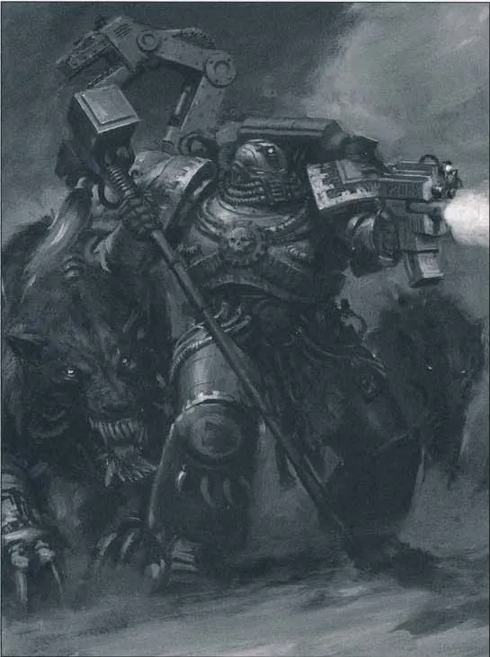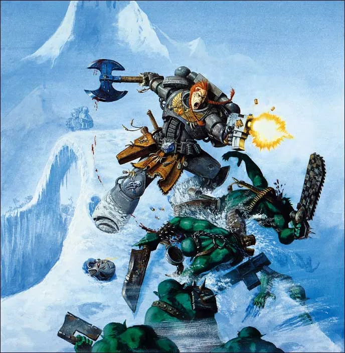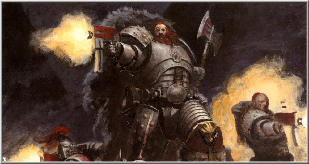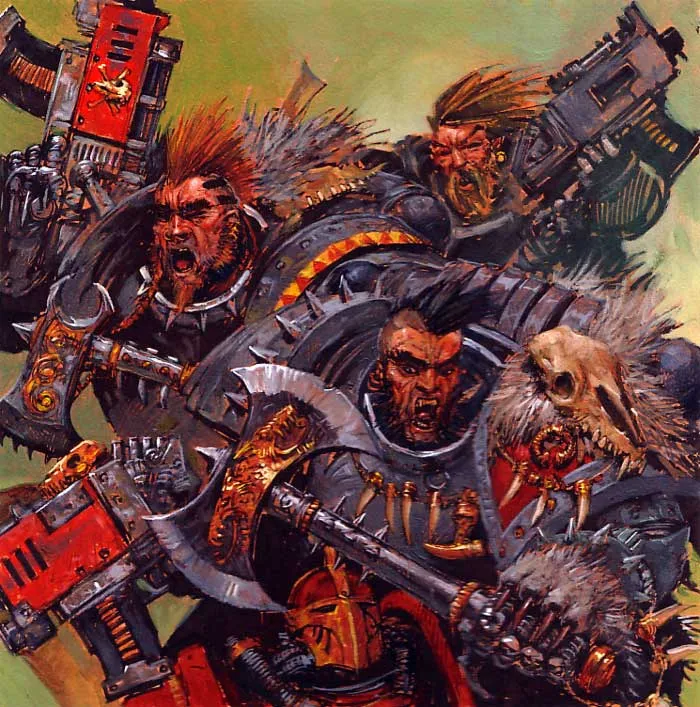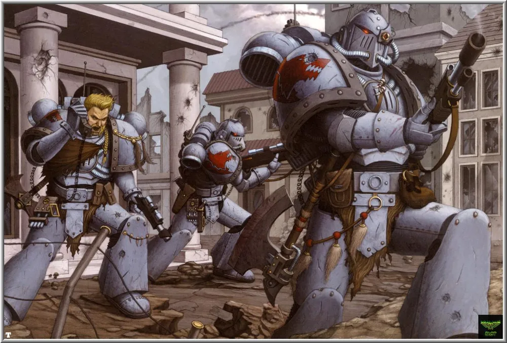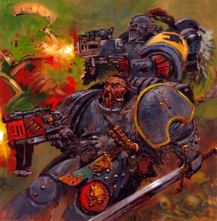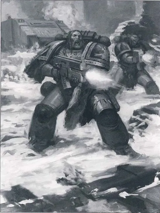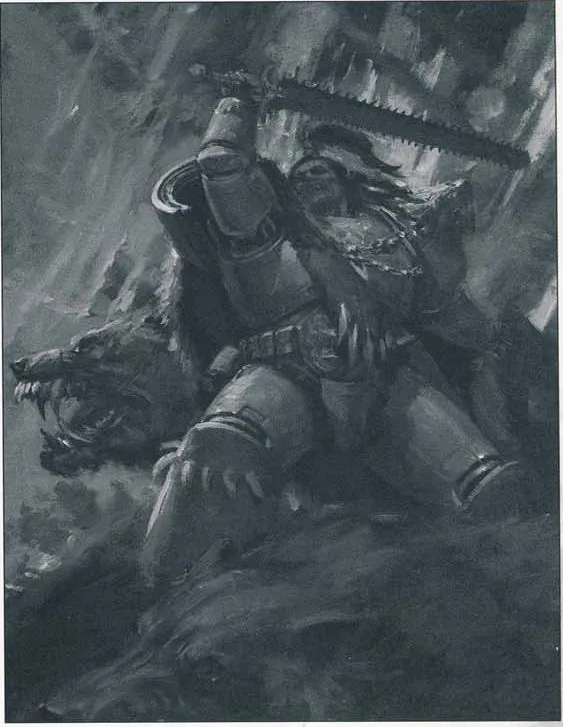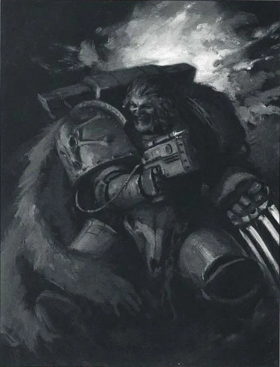С возрастом к Кровавым Когтям приходит опыт… а ещё у них отрастают клыки и происходит ещё пара изменений. Геносемя Ордена крайне нестабильно, и ещё при его имплантации у всех десантников есть неплохие шансы стать мутантами, больше похожими на волков, чем на людей. Тем не менее, вернёмся к нашим бара… Серым Охотникам, исполняющим у Космоволков роль тактических отделений. Обретённая ими за годы сражений выдержка идеально вписывается в modus operandi таковых.