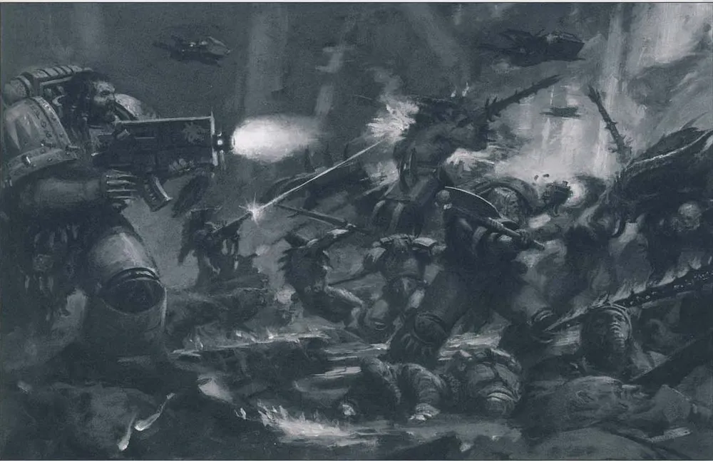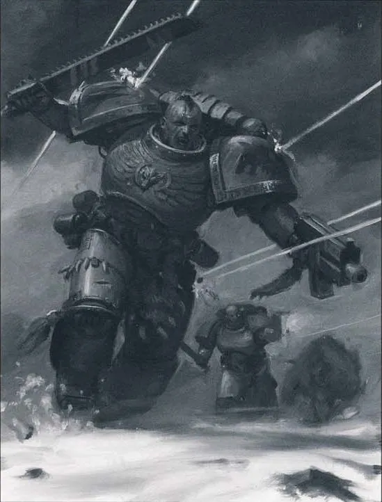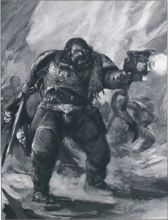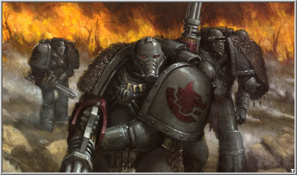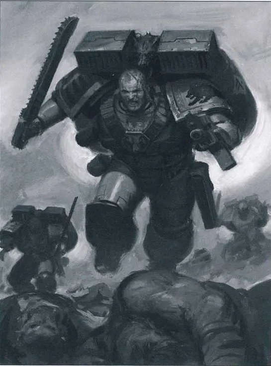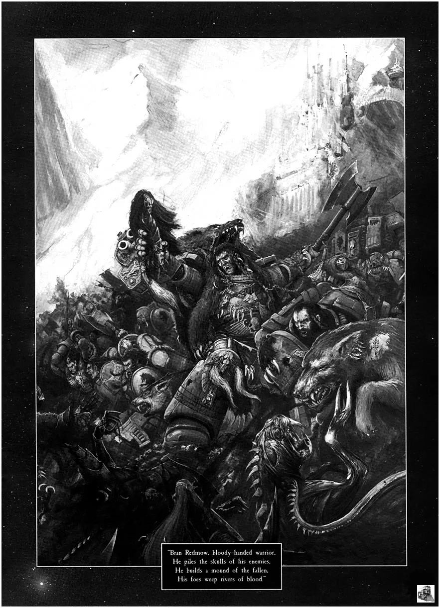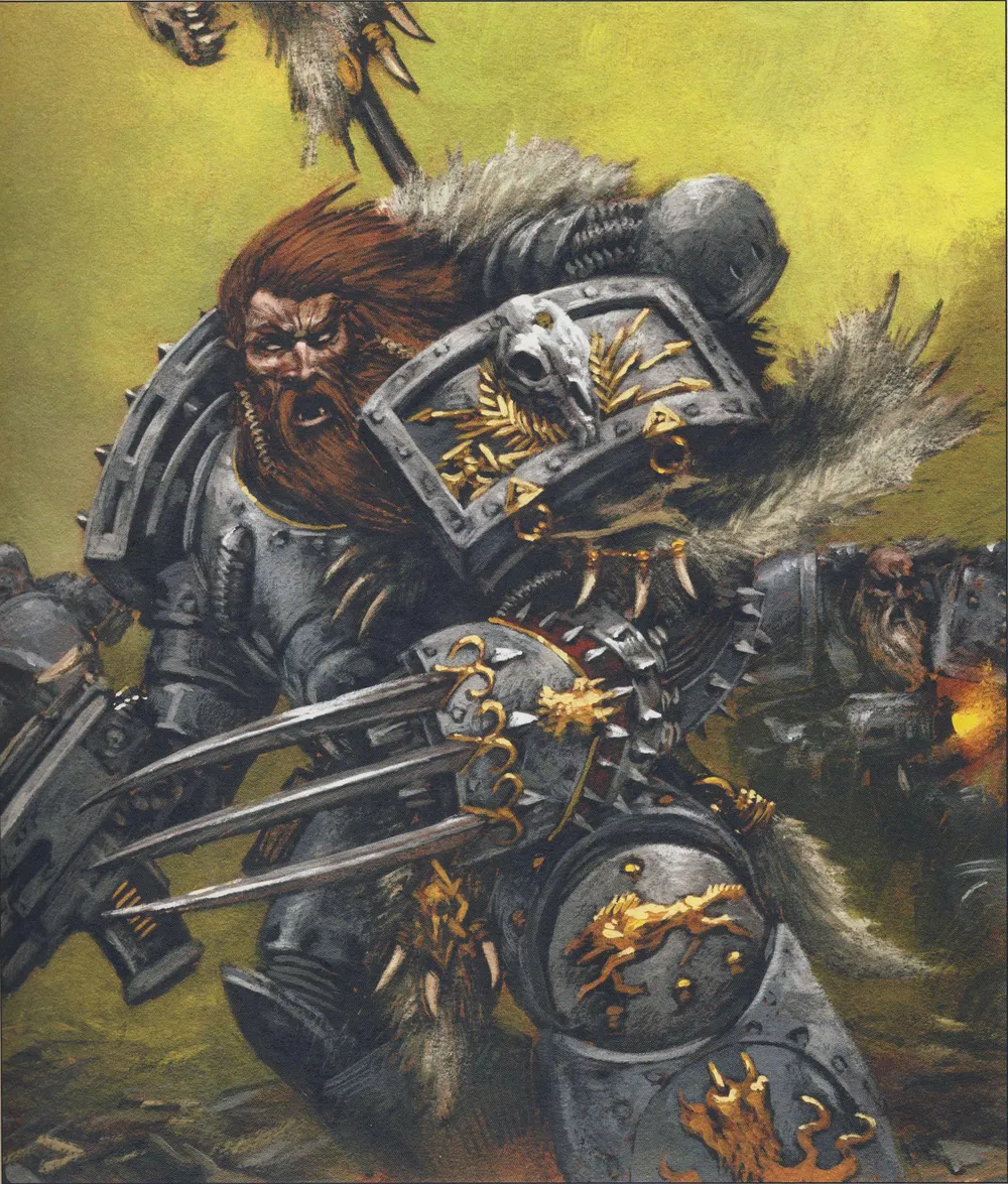 С возрастом к Кровавым Когтям приходит опыт… а ещё у них отрастают клыки и происходит ещё пара изменений. Геносемя Ордена крайне нестабильно, и ещё при его имплантации у всех десантников есть неплохие шансы стать мутантами, больше похожими на волков, чем на людей. Тем не менее, вернёмся к нашим бара… Серым Охотникам, исполняющим у Космоволков роль тактических отделений. Обретённая ими за годы сражений выдержка идеально вписывается в modus operandi таковых.
