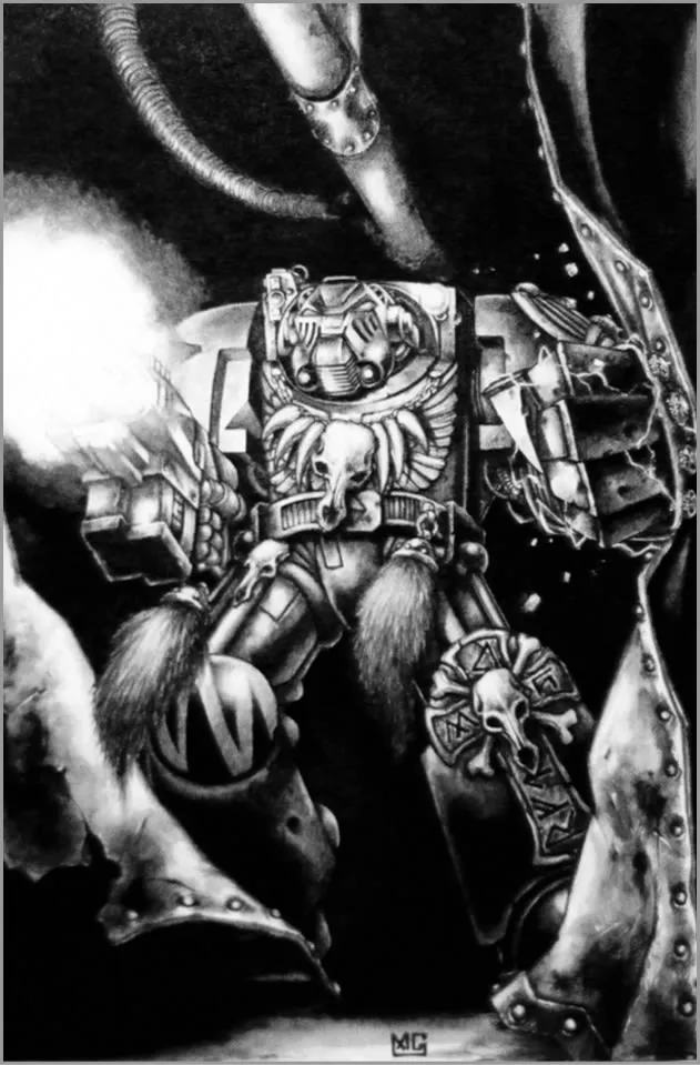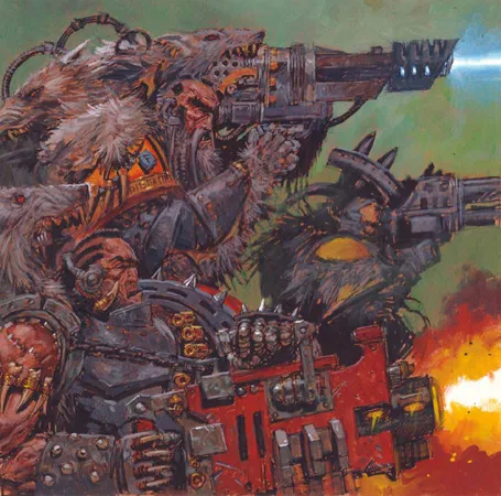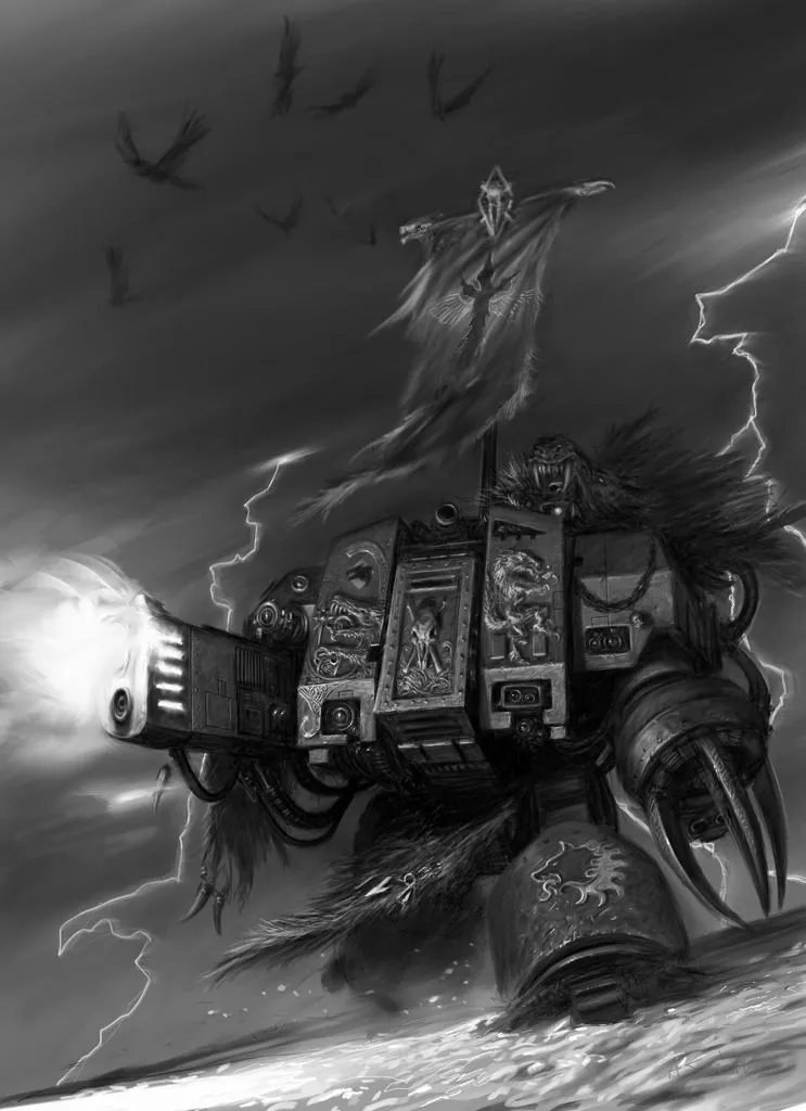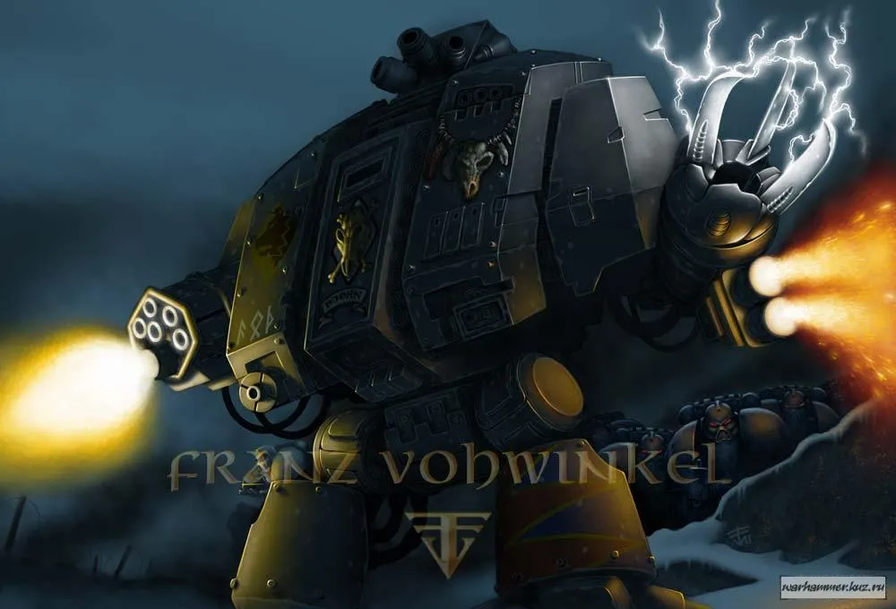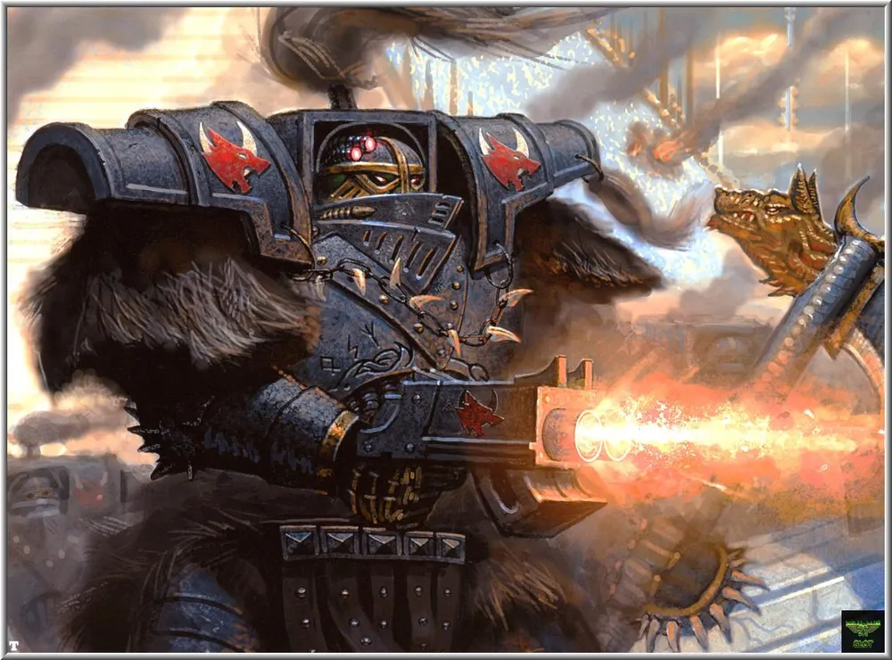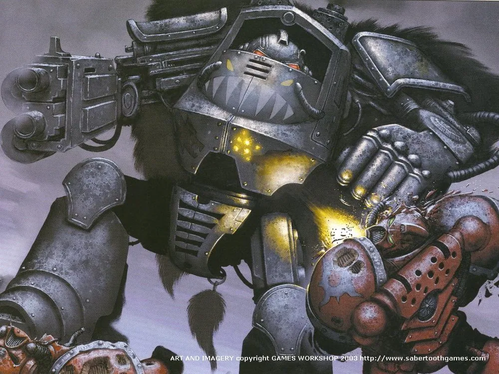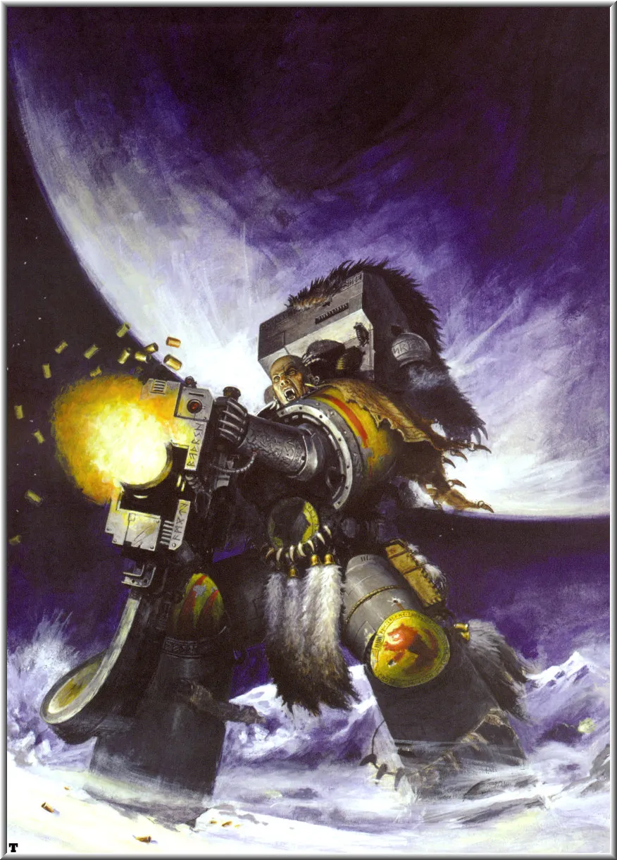 …особенно когда несут в бой пару-тройку сотен килограммов бронированного бугая. Кавалерия Волков — Громовые Волки — жуткое зрелище. Впрочем, даже пересилившие страх противники, пальнув в «скакуна» могут обнаружить, к своей неугасающей последние секунды жизни радости, что волки эти неплохо аугментированы и являются киберволками. Конечно, на орочью свинницу с киббанами не тянет, но тоже внушительно.