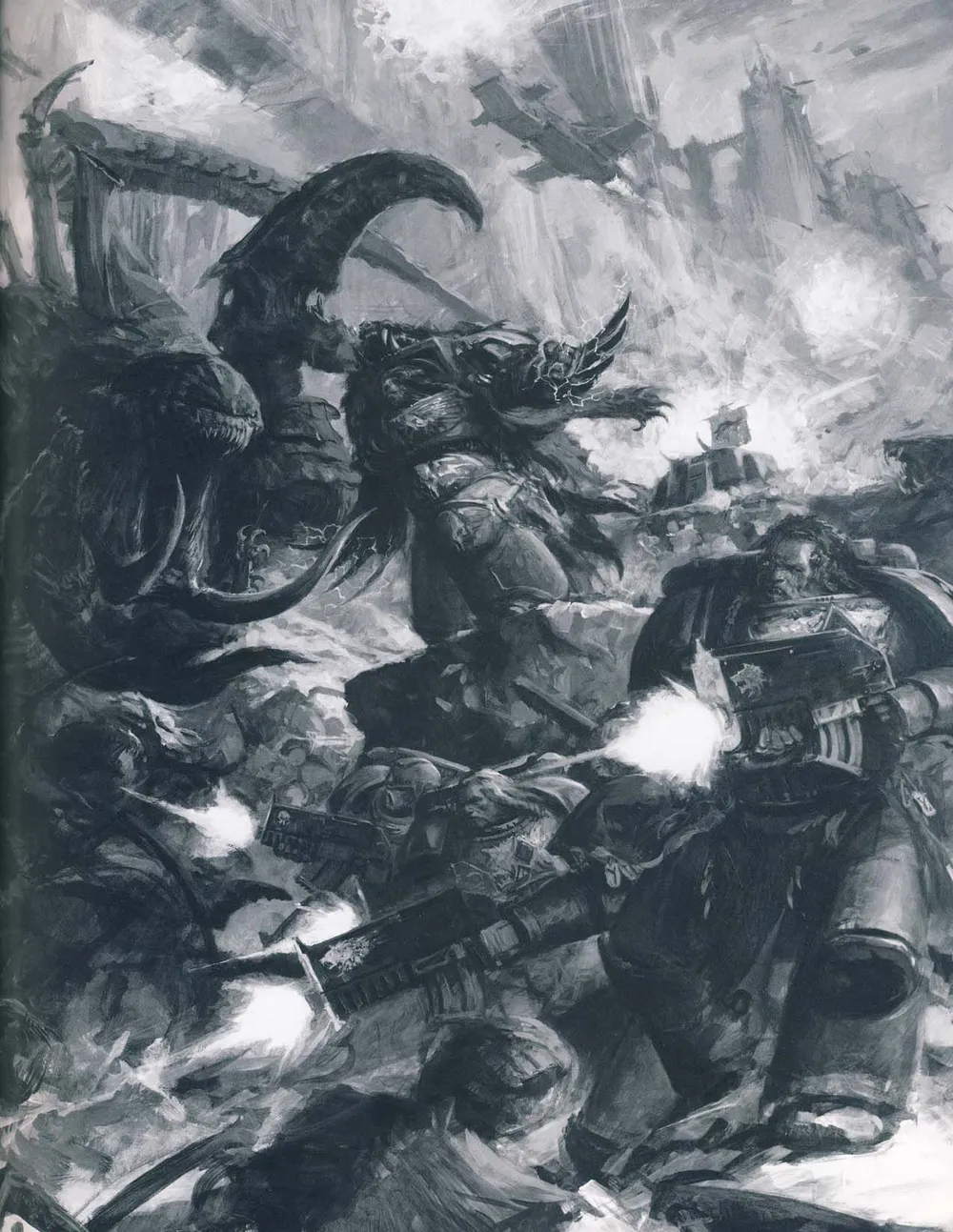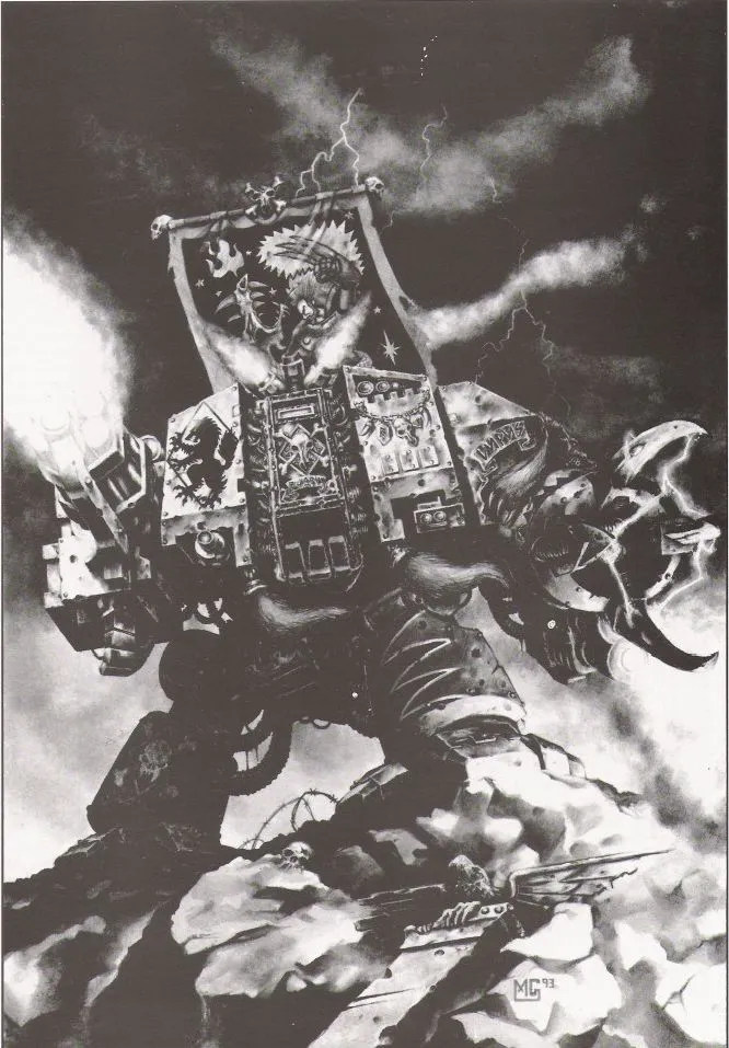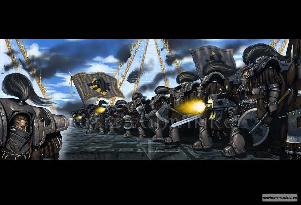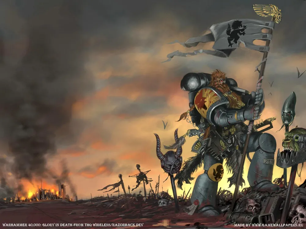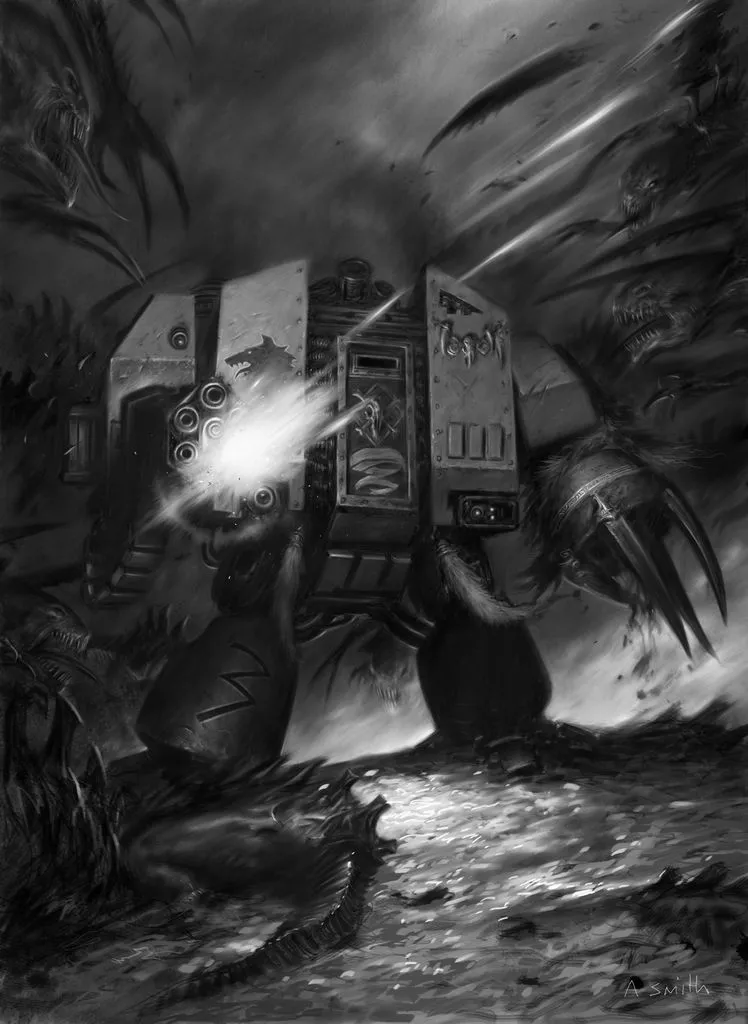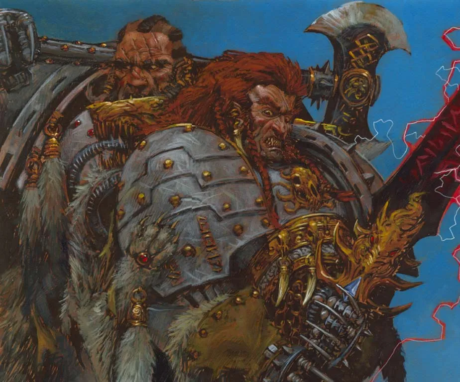 …особенно когда несут в бой пару-тройку сотен килограммов бронированного бугая. Кавалерия Волков — Громовые Волки — жуткое зрелище. Впрочем, даже пересилившие страх противники, пальнув в «скакуна» могут обнаружить, к своей неугасающей последние секунды жизни радости, что волки эти неплохо аугментированы и являются киберволками. Конечно, на орочью свинницу с киббанами не тянет, но тоже внушительно.
