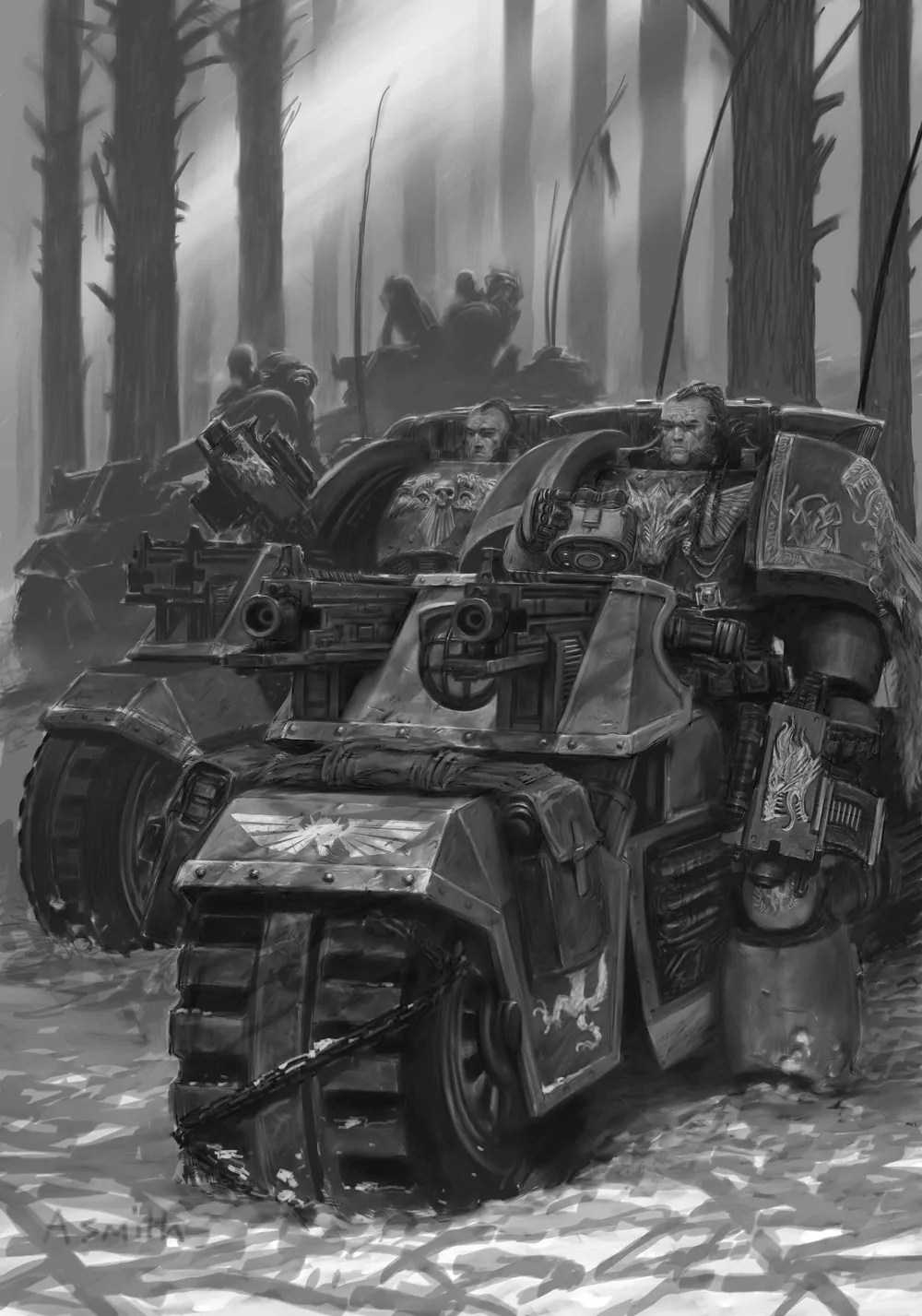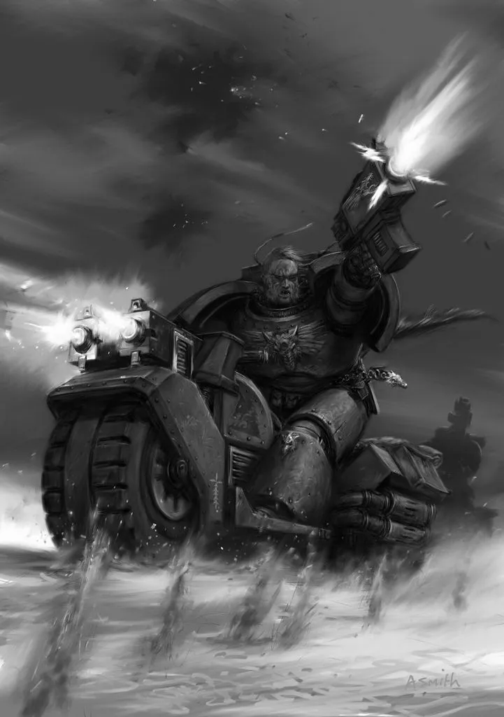 Вместо «Гравилетов Лэнда» Космоволки иногда используют стандартные мотоциклы космодесанта. Никакой специфики Ордена тут нет, за исключением самих десантников, к которым в полной мере применимо то, что я писал о Кровавых Когтях.