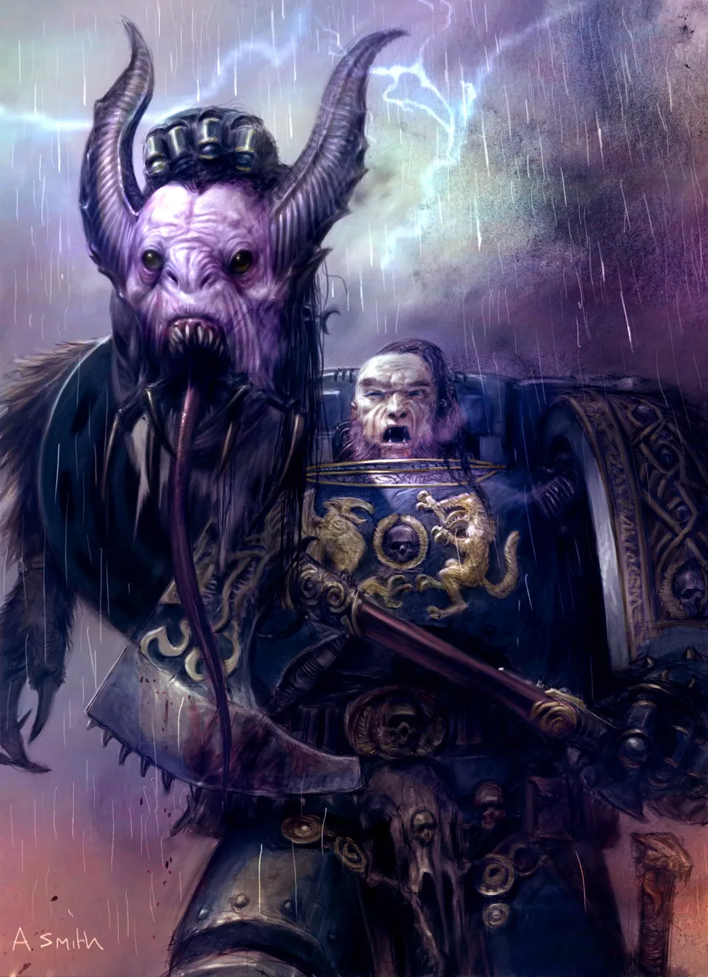 Лукас Обманщик, вечный Кровавый Коготь. Местный Локи, так всех бесит, что до сих пор не получил повышения, хотя по опыту уже дорос до Волчьего Владыки. Доктор Хаус в мире Warhammer 40000, лжец, тролль и, что очевидно для десанта, девственник.