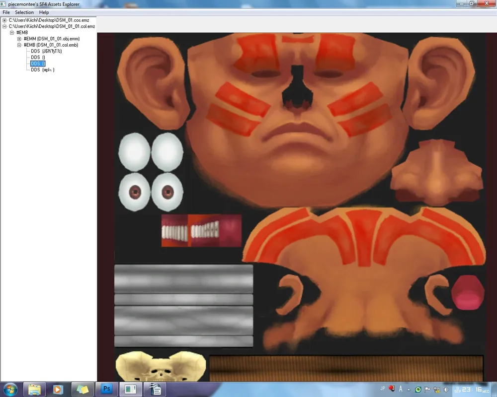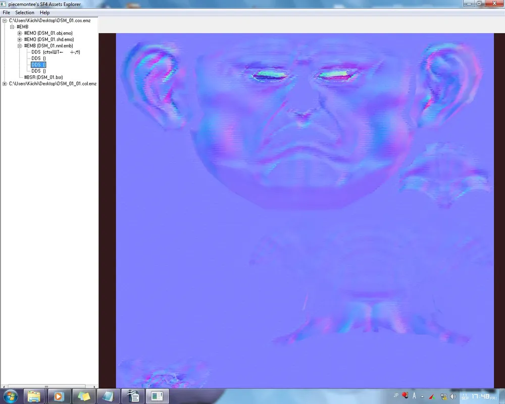 Теперь приступим к текстурам. Раскрываем ветки *.col.emz >> #EMB >> *.col.emb и видим там несколько DDS текстур.