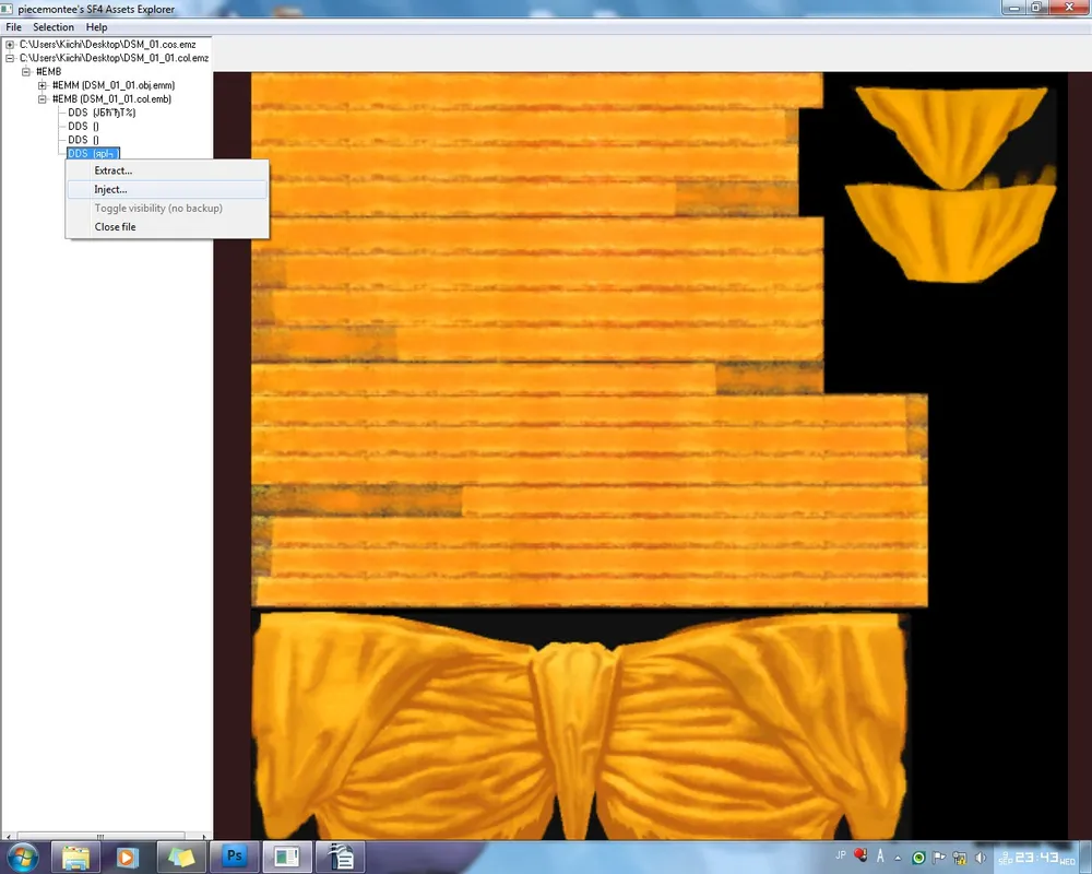 А вот редактировать текстуру мы будем всеми любимым и привычным PhotoShop'ом. Только нам понадобится для этого плагин. При сохранении текстуры необходимо указывать тот же самый формат сжатия! Сохранённые текстуры Inject'им на место старых, сохраняем и радуемся =)