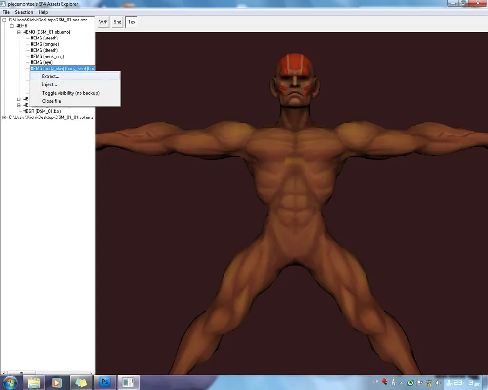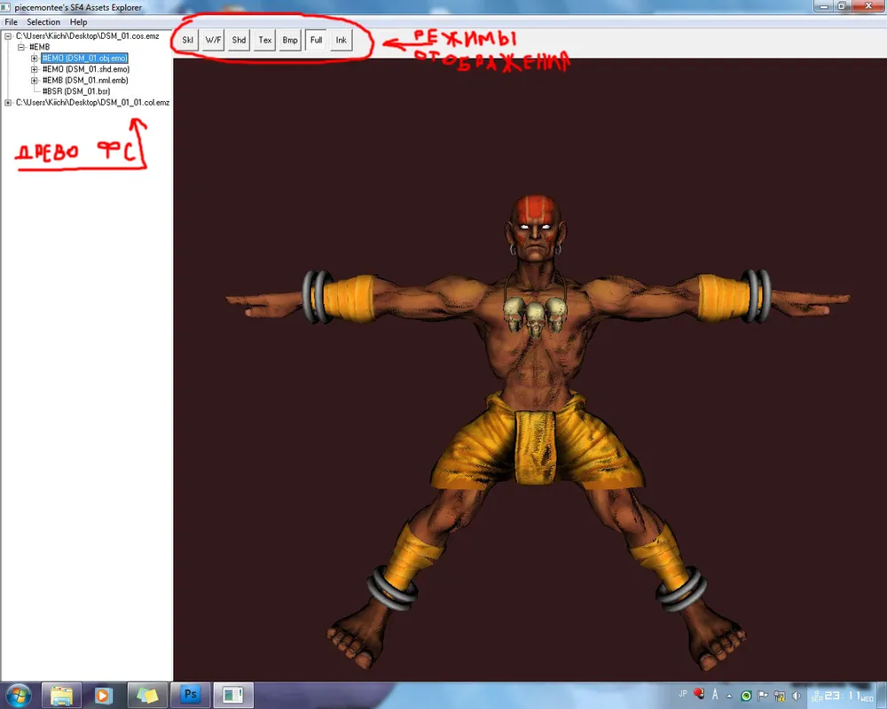 В первую очередь нам потребуется программа SFIVexplorer (Не требует установки). Открываем (File -> Load file) сначала модель, затем текстуру.