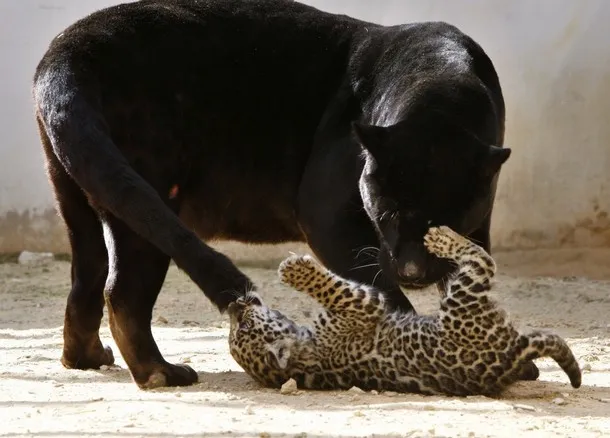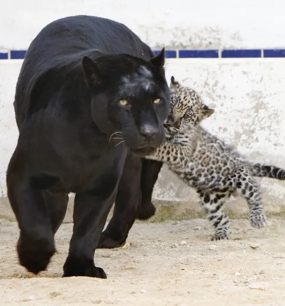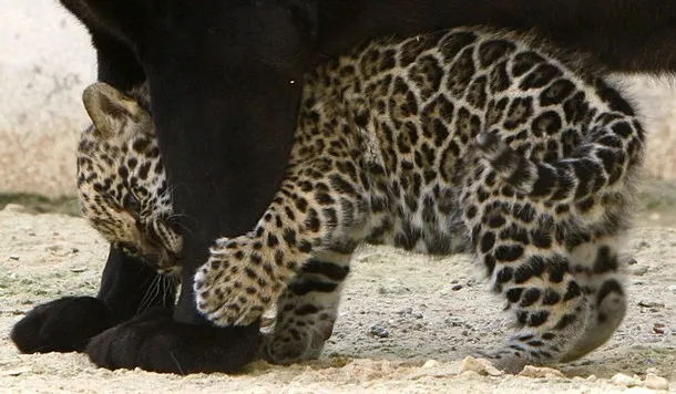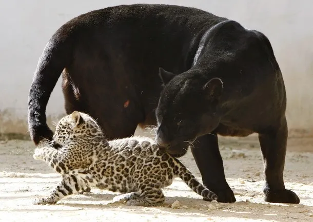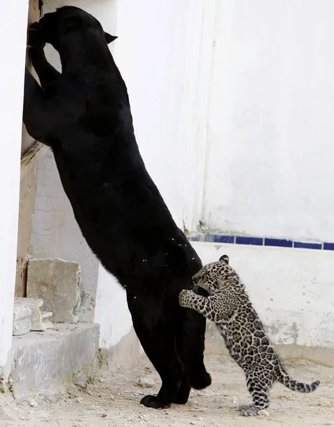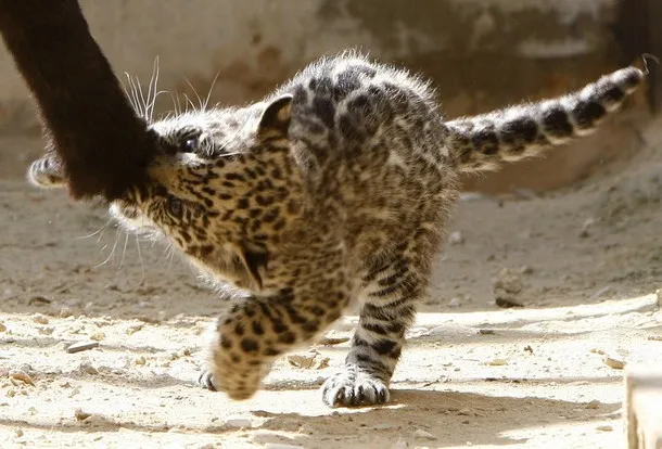 Этот беспощадный зверь — собственный детеныш самки. Он впервые появился на публике в зоопарке Иордании. Фалах, отец, содержится отдельно от котенка, так как может повредить ему. А мама терпеливо сносит все нападки.