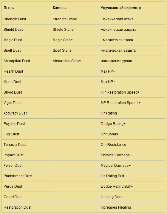 Всего существует 19 видов пыли, из которой можно создать 19 видов камней.