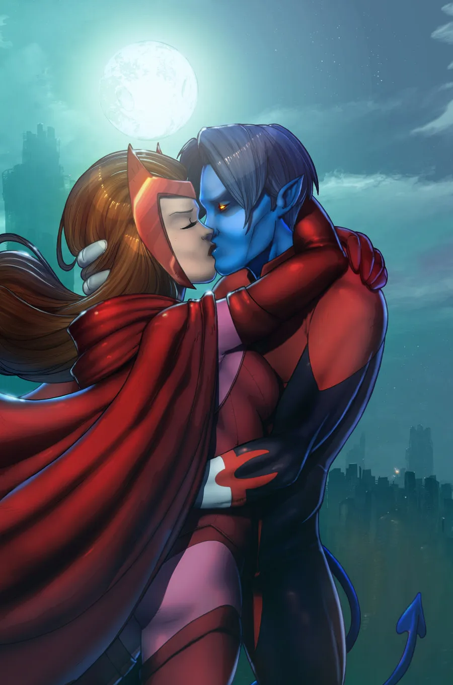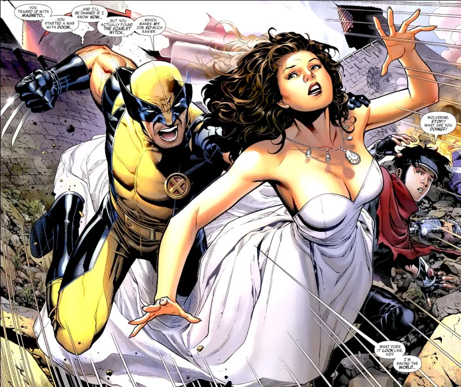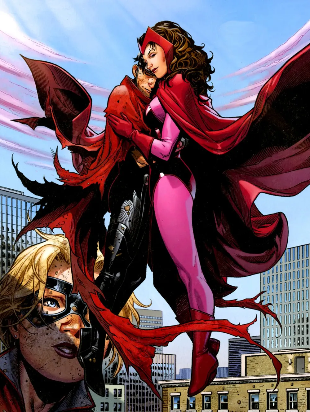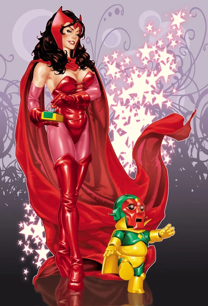 Роман Ванды и Вижн оканчивается их свадьбой. Это важное событие заставляет Ванду выяснить, кто ее биологический отец. Все время она считала таковым Уиззера, но позже она узнала, что ее отцом является Магнето. Она становится еще более зла на него, за то, как он оскорбительно обращался с ней во время пребывания в Братстве. После смерти Агаты Харкнесс, ее магическая сила помогает Ванде забеременеть близнецами Томасом и Уильямом. Она уходит в отставку вместе с Вижн, чтобы заняться воспитанием детей.
