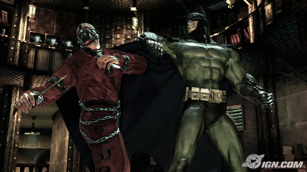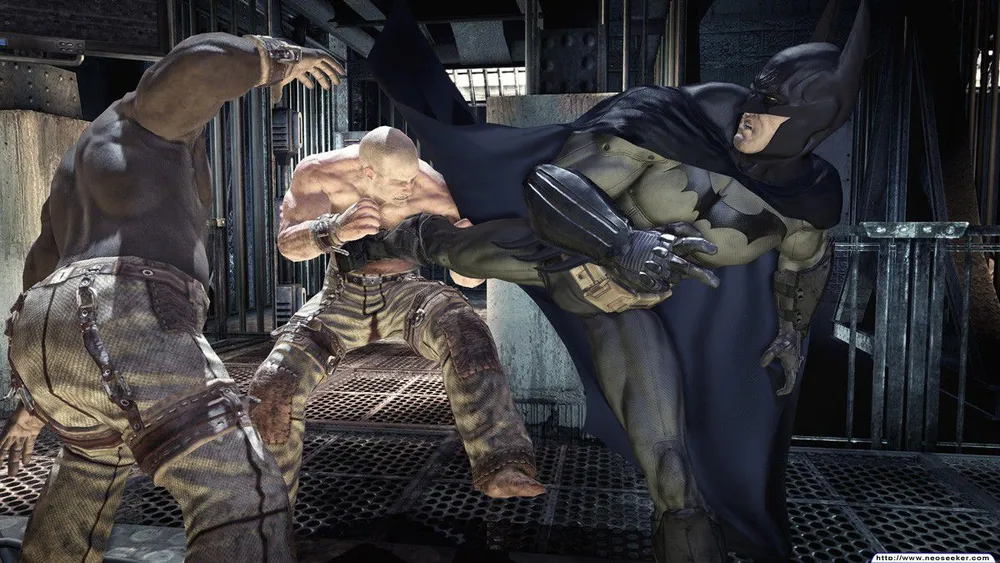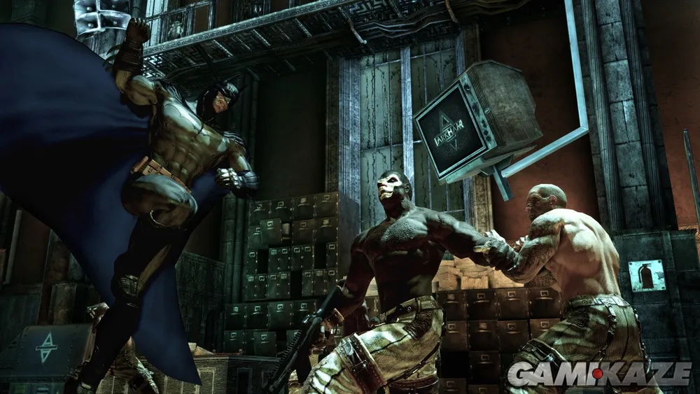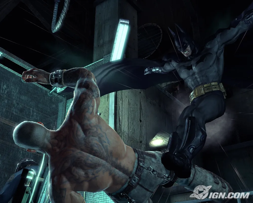 Бороться с противниками мы будем уже на первых минутах игры, это люди Джокера. В рукопашном бою бэтмен показывает нам мастер класс, тут вам и хуки, апперкоты, удары ногами в воздухе с разворота, борцовские захваты и броски — все выглядит очень впечатляюще и зрелищно, но тем не менее враг не может похвастаться такими же навыками боя, и разнообразием атак, в бою ведет себя медлительно и пассивно. Научится драться очень легко, нам в этом помогают всплывающие подсказки, комбинация обеих кнопок мыши, и клавиш space и ctrl преобразуются в разнообразные комбо. Чем больше комбо, тем больше опыта вы получите, да да, вы не ослышались, именно опыта, в игре присутствует RPG элементы, накапливая опыт мы прокачиваем умения, скажем метания сюрикенов или разнообразные трюки. Всякий полет острой, как бритва звездочки обыгрывается авторами с помощью замедления времени и качественной анимации, акцентирующей внимание на вращении "смертельного подарочка". С одной стороны это довольно эффектно, с другой стороны немного замедляет игру. Бэтмен расхаживает по лечебнице как металлический терминатор, и только в бою он показывает свою скорость и реакцию, пока он атакует одного бойца, его спина открыта что и используют многочисленные враги, окружая его со всех сторон, наш герой не теряется и молниеносно раздает порции ударов одновременно всем. Герой зрелищно и эффективно орудует кулаками, не брезгует "стальными" захватами, добивает врагов ударом ноги. В это время, камера творит чудеса – снимает с самых эффектных ракурсов, использует всяческие трюки и ухищрения, вроде замедленной съемки и прочих операторских фокусов.
