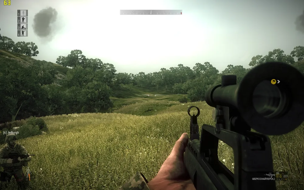движок, но на дальние расстояния пули летят по траектории, целиться нужно выше, а при стрельбе по движущимся целям нужно стрелять на упреждение. Огромный арсенал оружия, взрывчатки и всяческих гаджетов, типа снайперских прицелов с тепловым видинием. Оружие звучит очень натурально, при наличии хороших колонок можно устроить соседям войну)