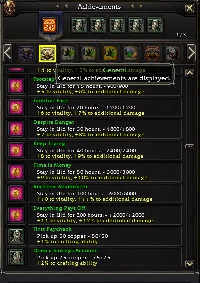 - Вы можете объединять достижения и их бонусы для конкретной задачи, например, если вы собираетесь сделать предмет, с помощью достижений вы можете повысить себе шанс удачного крафта.