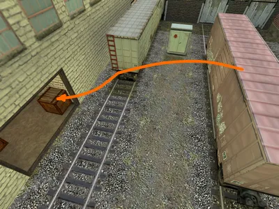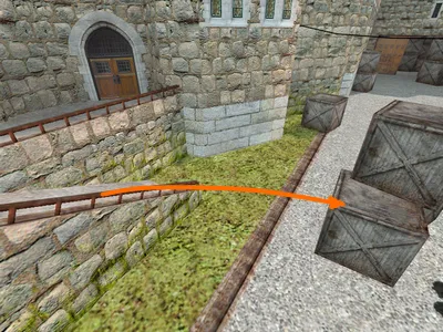 de_cbble, прыжок с перил бомбплейса «Б» на высокий ящик, также известен как «cobble jump»;