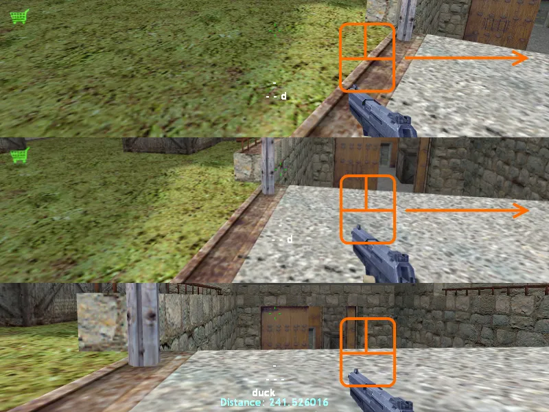 Он дает бóльшую, на 1-2 юнита, длину прыжков, чем обычный бхоп, но самое главное, с ним можно прыгать с той же скоростью по более высоким препятствиям. Бхопом без приседания можно запрыгнуть на высоту до 34 юнитов, а stand up bhop-ом можно брать препятствия вплоть до 53 юнитов.
