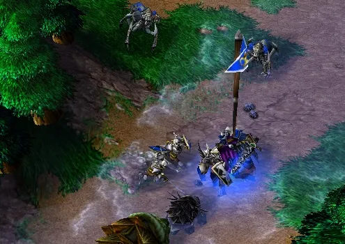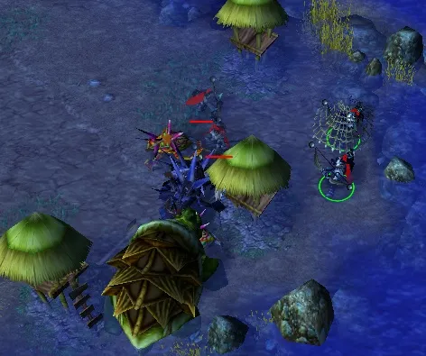 Обычно андед уходит на начальной стадии либо в пауков, либо в гулей, в обоих вариантах крипить точку можно с помощью скелетов, которые у вас будут благодаря посоху, стоит посох немного, всего 150 голды. Некоторые андеды не покупая посоха крипят зелёные точки двумя финдами и ДК, в этом случае стоит подставлять финдов под удар, а коилом ДК лечить наших драгоценных пауков.