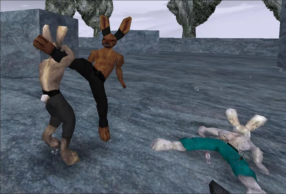 Начнём с сюжета, который, на первый взгляд, создан под влиянием диэтиламида d-лизергиновой кислоты. В самом деле - прямоходящие зайцы с гигантскими ушами, в футболках и спортивных костюмах, каждый из которых знаком с айкидо... Но тут, пожалуй, таблетки закончились, ибо всё остальное серьёзно, как инфаркт миокарда. Тёрнер, наш главный герой - простой антропоморфный кролик, тихо живший в своей маленькой деревне с женой и дочерью, пока в один прекрасный день не пришли налётчики. Вся деревня была вырезана вместе с семьёй и друзьями героя, и он поклялся отомстить... Всё это, повторяю, на полном серьёзе. Более того - чем дальше мы продвигаемся по простому, но драматичному сюжету, тем больше понимаем, почему Дэвид Розен - человек, почти в одиночку разработавший игру - закрутил конфликт вокруг кроликов и волков, а не, к примеру, японских крестьян и феодалов. Иначе игру просто запретили бы, ведь ломание позвоночника сородичу - далеко не самое страшное, что предстоит сделать Тёрнеру...