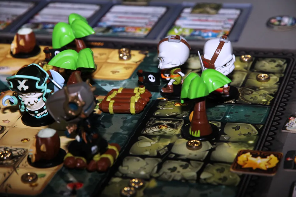 Компоненты игры вызывают гордость у владельца и зависть у зрителей. Это именно та настолка, которую можно смело показывать друзьям, а миниатюры выставлять на всеобщее обозрение в витринах и сервантах. В базовую коробку входят аж 8 миниатюр, красочное игровое поле и элементы декораций (ящики, кусты, деревья), а также необходимые жетоны, монетки и кубики. Наиболее преданные поклонники игры могут приобрести себе пластиковые аналоги «декораций», но, к чести издателя, даже картонные деревца, выставленные на поле, выглядят потрясающе. Стоит отметить высокое качество самих миниатюр и их покраски – оно также на высшем уровне.