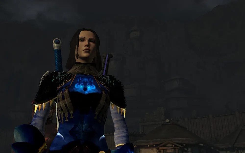 Но вот всё стихло и ещё одна личность откинула капюшон. Это была стройная женщина в доспехах и с большим двуручным мечом.