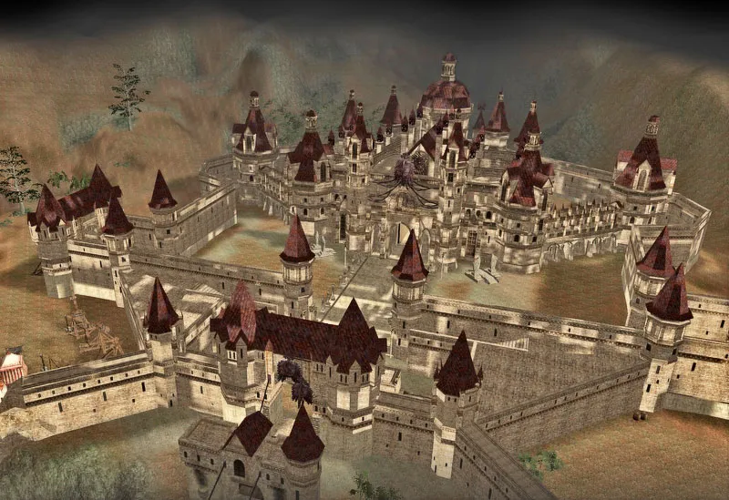В самом центре локацииПограничье проклятых вод возвышаются башни древнего замка. Крепки его врата, высоки его стены. Несметные богатства спрятаны в его темных и сырых подземельях. Только могучим воинам, победителям кровавой схватки «Защитников реликвий» по праву сильных разрешено владеть им.