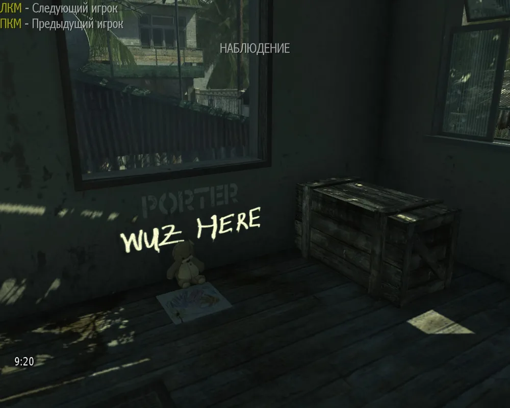 Плюшевый медвежонок сидит у окна, а над ним написано "Porter Wuz Here" и рядом ящик, похожий на тот ящик, которая дает рандомное оружие в режиме Зомби, в World at War и Black Ops. Не стоит забывать, что в ящике может оказатся именно медвежонок Тедди Так что же значит "Porter Wuz Here"? H.Porter был ученым и членом секретной группы 935. Он изобрел "Porter's X2 Ray Gun", "Porter's X2 Zap Gun" и знаменитый "Pack-a-Punch". Porter был упомянут в ряде документов доктора Ванневара Буша. Доктор Эдвард Рихтгофен упоминает о нем на карте "Луна", когда игрок получает Pack-а-Punched Wave Gun.