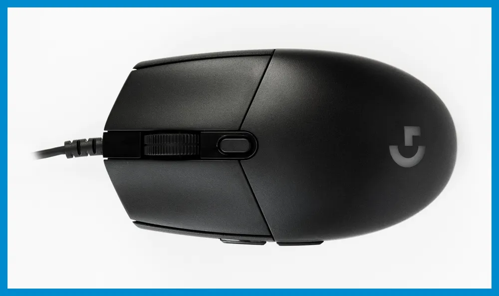 Колесико при медленной прокрутке движется совершенно бесшумно, а при быстрой издает негромкое характерное шуршание. Однако вне зависимости от скорости вращения отсечки хорошо фиксируются и ощущаются благодаря тактильной отдаче. В качестве кнопки оно имеет очень короткий ход и срабатывает с тихим, но ясно различимым щелчком, для чего потребуется приложить усилие выше среднего. Кнопка над колесиком позволяет циклически переключаться между пятью или менее значениями разрешения сенсора (по умолчанию: 400, 800, 1600 и 3200 dpi), устанавливаемыми через официальное приложение Logitech Gaming Software. Боковые кнопки, снабженные переключателями Kailh, имеют небольшой размер и продолговатую форму, разделены зазором и легко находятся вслепую. Ход у них короткий, но упругий, кликаются они со средним усилием и при этом издают негромкий щелчок. Причем их можно как нажимать, так и слайдить вверх. По умолчанию данные кнопки отвечают за переход «вперед» и «назад», например, при просмотре страниц в браузере.