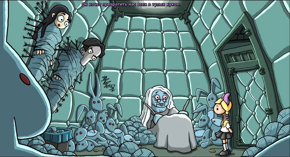 3) Третья возможная находка разработчиков — это недетский юмор. Для детей он не подходит, не понравится он и большинству любителей классических квестов. Так как, порой, он слишком черный и порой не всем непонятный.
