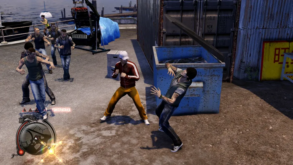Рукопашные схватки — один из основных элементов геймплея «Sleeping Dogs», если и вовсе не главный. Это как раз та самая «фишка» игры, отличающая её от прочих «клонов». Наш протагонист умеет атаковать и контратаковать, уворачиваться от ножа и кулака, бить быстро или сильно, перепрыгивать через противника и перебрасывать его через себя. Поначалу небогатый арсенал приёмов Шеня со временем пополнится новыми, более действенными и сложными комбо. Одно небольшое, но красочное заимствование «Sleeping Dogs» сделала у «The Punisher»; речь идёт о специальных фаталити с помощью окружающих предметов — это могут быть мусорные баки, телефонные будки, кондиционеры, мясные крюки и много-много чего другого. Не только выглядит впечатляюще, но ещё и очень полезно — после подобных истязаний противник уже не поднимется с земли и не причинит неудобств. Все боевые движения срежиссированы отлично, смотрятся органично и очень красиво.