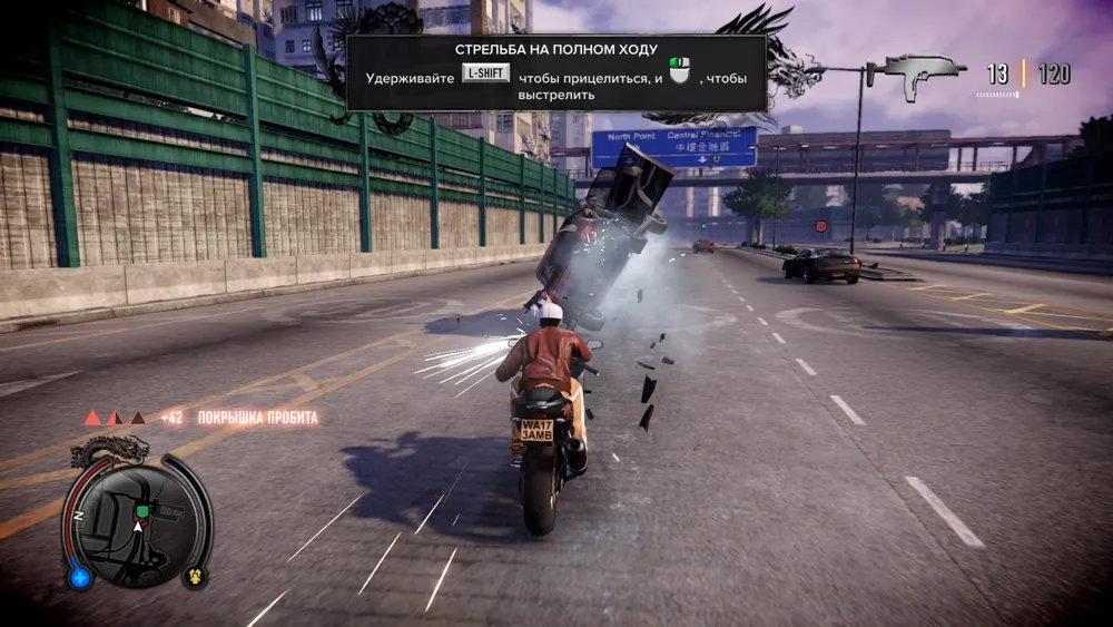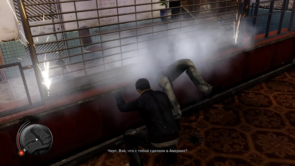 Пушек в бандитском Гонконге немного, встречаются они нечасто, так же как и вооруженные ими бандиты. И вот за это разработчикам нужно сказать спасибо, ибо стрельба — самый неуклюжий и неотработанный элемент геймплея. Возможно, я излишне критичен из-за бага прицеливания, донимавшего меня всю дорогу. Но даже если закрыть на него глаза, перестрелки выглядят слишком топорно и просто. Спрятался в укрытие + вылез + выстрелил — вот тебе и рецепт успеха. Немного спасает положение то, что стрельбу увешали красивыми фишками вроде слоу-мо. Противники по перестрелкам не имеют понятия о таких простых вещах, как смена дислокации и обход с фланга. Думается мне, что товарищ Джон Ву не одобрил бы подобных подходов.
