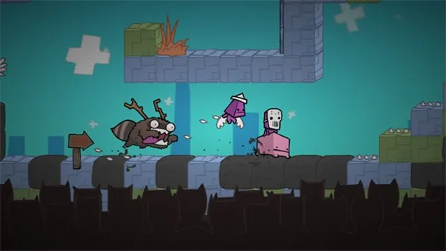 BattleBlock Theater – это занимательный аркадный платформер от американской студии The Behemoth (какое дьявольское название-то), выпустившей несколько годных игрушек: побегушку-пострелушку за желтого таракашку Alien Hominid и рубилку-кромсалку с ролевыми элементами Castle Crashers. По сюжету BattleBlock Theater, два розовых дружка (они действительно розовые), решив поплавать по буйному морю на утлой лодчонке, попадают в страшную бурю, в результате которой их лоханка тонет, а их самих выбрасывает на берега таинственного острова. Исследуя заросшую джунглями местность, товарищи набредают на обшарпанное здание местного театра (черт его знает, откуда он там взялся, не спрашивайте), затем попадают в плен к странного вида аборигенам, которые ставят их перед фактом – либо они участвуют в жестоких театральных постановках в качестве гладиаторов, либо их ждет гибель. Друзей заточают в тюрьму, где своей печальной участи дожидаются сотни таких же неудачников, а потом случается страшное – один из “кораблекрушенцев” нацепляет на себя волшебную шляпу и сходит с ума. Теперь он великий гладиатор, а его друг (уже бывший) – лишь один из соперников на пути к славе и богатству. Такая вот перипетия. Как уже было сказано выше, все сражения проходят в театре, что роднит BattleBlock Theater с PS3-эксклюзивом Puppeteer. Есть и зрители, и декорации, и занавесы – все как полагается. Соперники бегают по разноплановым аренам, прыгают по интерактивным блокам-платформам (BattleBlock же), петляют среди ловушек, используют те или иные предметы и интенсивно мутузят друг друга, краем глаза поглядывая на агрессивных и очень голодных монстров. Бешеная динамика имеется, своеобразный визуальный стиль прилагается, все подается под соусом сумасшествия и безумства. Также в BattleBlock Theater можно обнаружить много, очень много котиков.