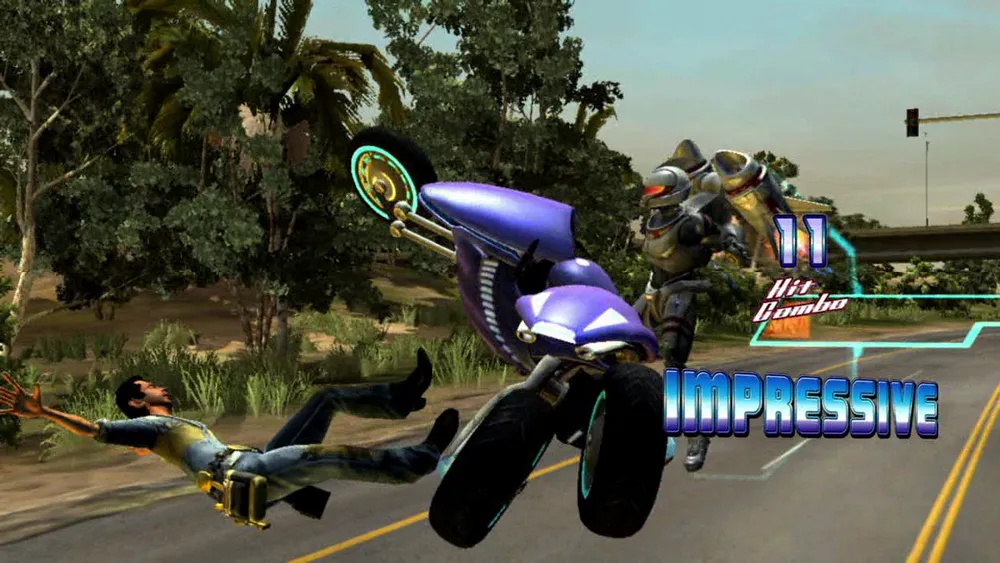 В студии Twisted Pixel Games работают творческие люди, и это можно понять, просто посмотрев на их послужной список. То они представят на суд аудиторию игрушку про беднягу-инопланетянина и его прожорливого одноглазого дружка (The Maw), то поведают историю о взрывающейся длинноногой чупакабре (Splosion Man), а то и вовсе предложат поиграть за доблестного шерифа-зомби (The Gunstringer). Что интересно, останавливаться на достигнутом господа из Twisted Pixel Games не собираются. Сейчас вовсю идет разработка их следующей игры из цикла “сумасшедших проектов” под названием LocoCycle, где в качестве главного героя (точнее, героини) выступает разумный мотоцикл I.R.I.S. Все бы да ничего – подумаешь, очередную “железяку” наградили искусственным интеллектом, но здесь следует учитывать возможности I.R.I.S. Данное средство для передвижения умеет драться, и дерется оно как посредством пулеметов и гранатометов, что привычно и обычно, так и с помощью шин. Как бы нелепо это не звучало, но I.R.I.S. может выполнять мощные комбо-удары, совершать невообразимые пируэты и проводить целые серии атак в ближнем бою. В качестве дополнительного оружия (по принципу булавы) женщина-мотоцикл использует своего же водителя, который водителем, на самом-то деле, и не является – всю игру он влачится за I.R.I.S., зацепившись штаниной за раму. Такое вот сумасшествие, реализованное в виде обычной, на первый взгляд, гонки. Но это не просто гонка, а что ни на есть самый настоящий файтинг на колесах. По сюжету LocoCycle, I.R.I.S. сбегает из ангара создавшей ее корпорации Big Arms, после чего попадает в руки среднестатистического механика Пабло. Тот впадает в восторг от свалившегося на него роботизированного чуда, но бедняга поначалу и не подозревает, чем обернется скоротечное знакомство с I.R.I.S. Уже скоро за ним и его новой “подружкой” прибывает зондер-команда в лице бойцов Big Arms, и I.R.I.S. уходит в отрыв, прихватив с собой и матерящегося распоследними словами Пабло, пятой точке которого предстоит нагреться до состояния белого каления. Помимо рядовых врагов (как раскатывающих на автомобилях, так и летающих в воздухе при помощи реактивных ранцев) в LocoCycle присутствует и суровый главный антагонист – брутальный “Харлей” S.P.I.K.E. с компьютерными мозгами. Именно он и доставляет больше всего хлопот I.R.I.S. и ее новому “бойфренду”.