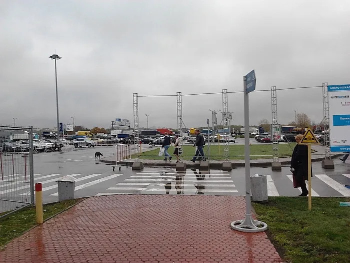 Ваш главный ориентир на этом участке — шоссе. Как только вы стали различать очертания машин (а я надеюсь, что для этого вам не надо подходить к ним вплотную) и увидели обширную парковку, останавливайтесь.