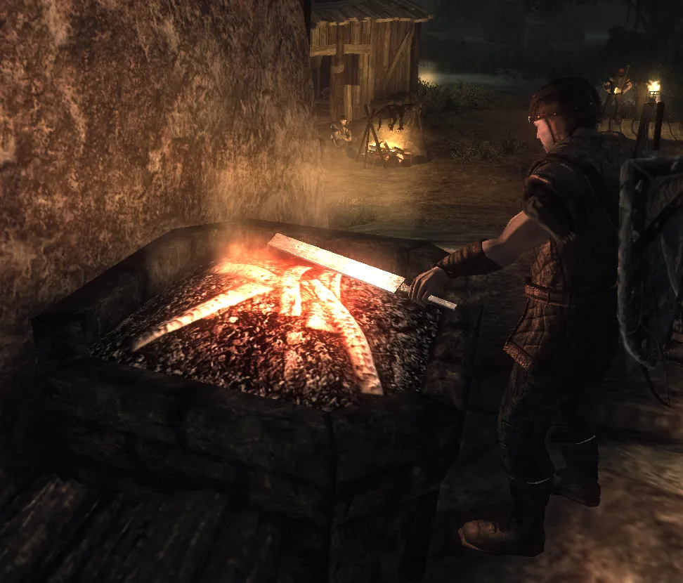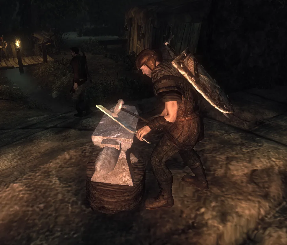Для работы нам потребуются кузнечный молот и заготовки для мечей.