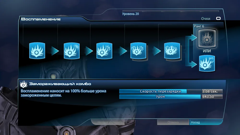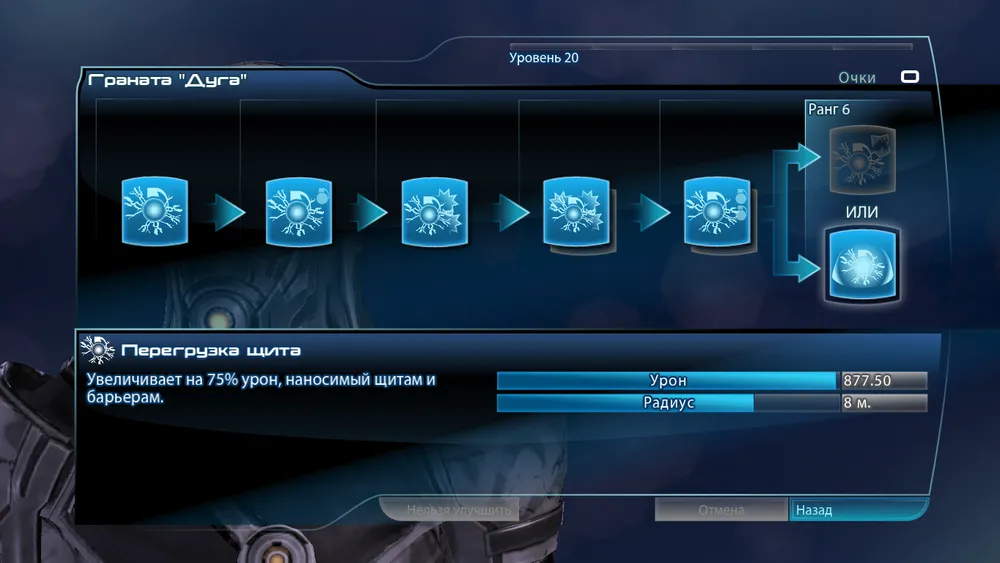 Качаем на урон и перегрузку щитов. Практика показала что чем больше гранат в запасе тем лучше, поэтому качаем на кол-во +1. Связка подобно бумерангу работает и в обратном направлении: кидаем гранату, поджигаем воспламенением: получаем тех.связку. Практично на гетах.