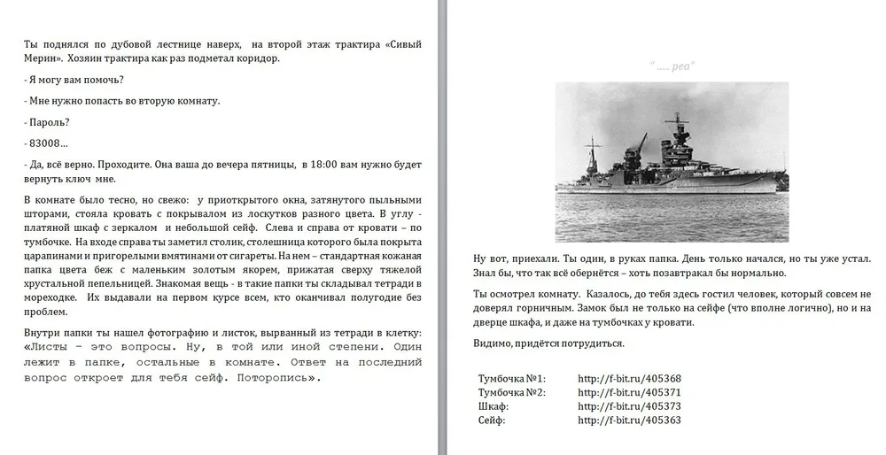 В нашем случае, слово «Куре» стало паролем к следующему заданию, расположенному в «шкафу»: