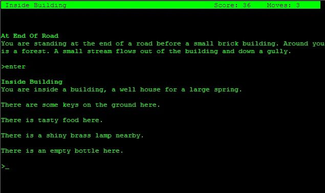 Именно так выглядел первый квест в истории. И если не обращать внимания на модную киберпанковскую черно-зеленую гамму, перед нами по сути принцип игры на "Квестере".