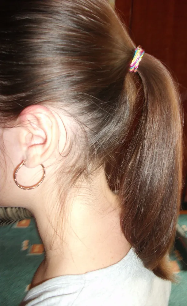Резинку лучше взять под цвет волос. Я взяла такую, чтобы лучше видно было.