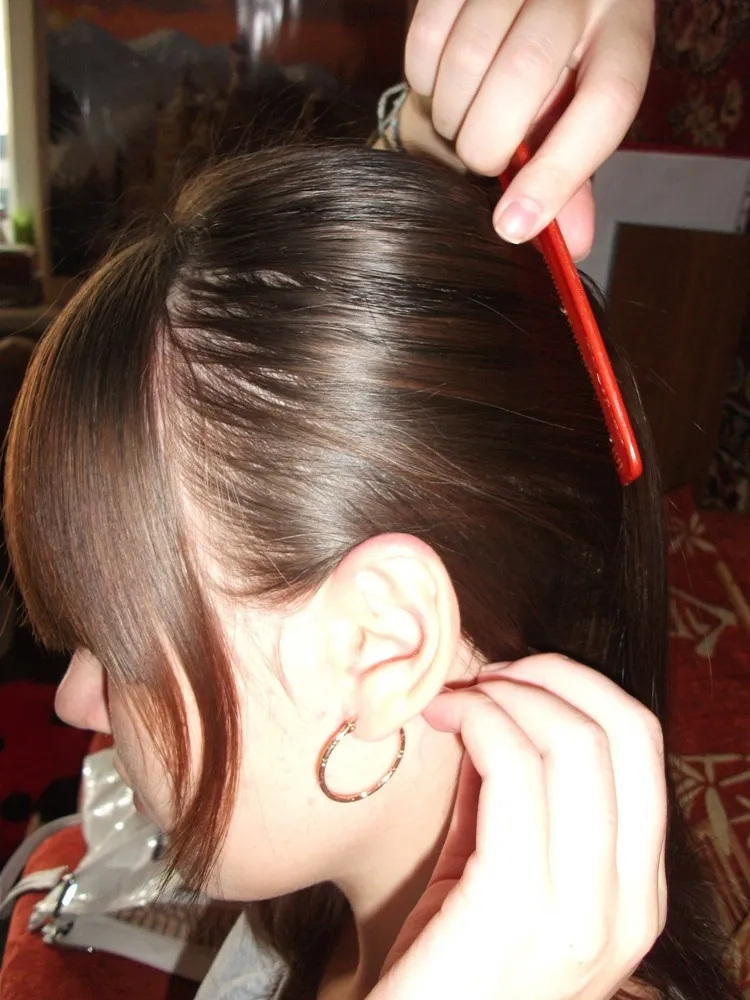 1. Волосы желательно выпрямить и сделать пробор с правой стороны.