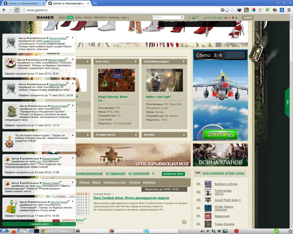 Во-вторых, мы сделали уведомления на все случаю жизни. При получении ордена за 30 золотых постов или медали наместника вы будете тут же об этом узнавать. Более того, обо всех магических проделках вы также будете знать все детали. Вопросов "кто закопал мой пост", "кто кинул помидор", "кто превратил меня в тролля" больше не будет - все на поверхности.