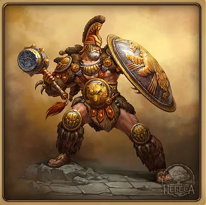 Одной рукой, с надетым на нее щитом, он держался за гриву льва, а в другой держал высоко поднятый