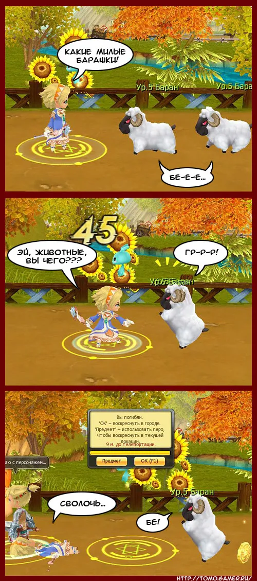 После оживленной разборки с толпами диких баранов и пчелуков (так их назвал вернувшийся Пороринг) компания решила сделать небольшой привал и перевести дух. Летающий зануда услужливо заполнял паузу своей болтовней.