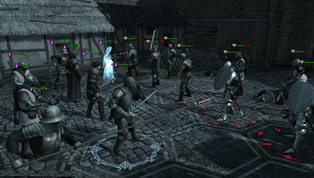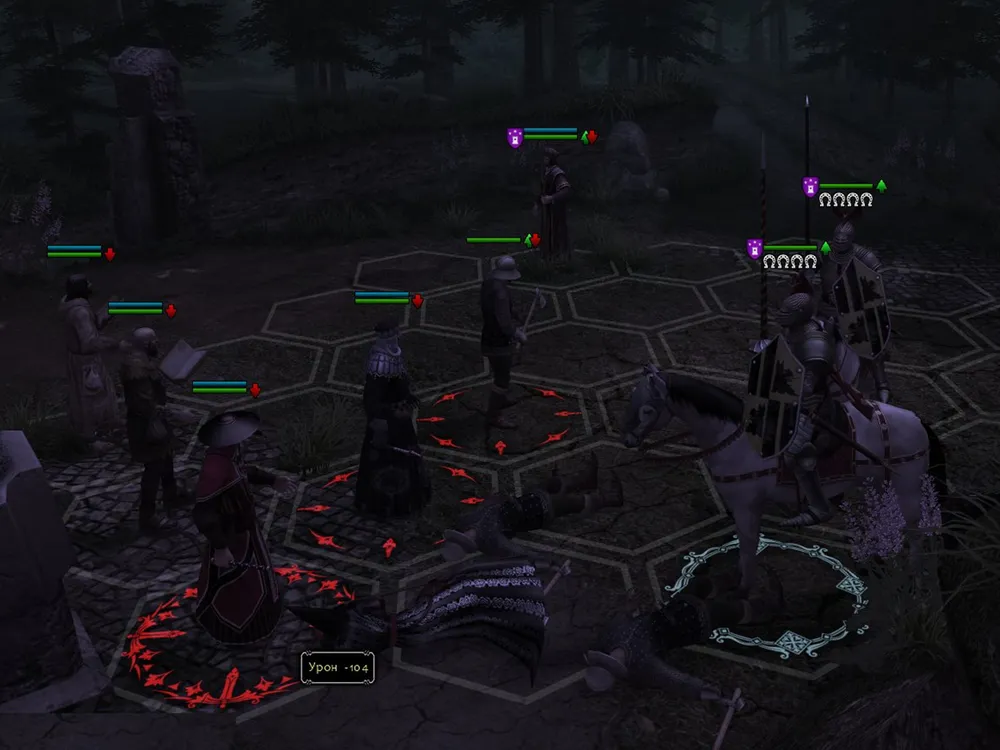 Увы, за остаток ночи просто не успеть добраться до лесной хижины, поэтому займёмся более близкими делами. Теми, что по силам тройке спутников. Например, разрушенную церковь Килиана, которую ещё предстоит посетить в будущем, с наступлением ночи облюбовывают сатанисты под командой – кошмар! - ересиарха. Если один из воинов будет сведён с ума, это печально кончится для всего отряда. Поэтому решающее значение в этом бою имеет построение воинов.