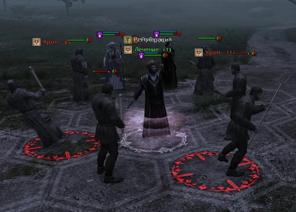 С наступлением ночи на болоте появляется некоторое количество целей, с которыми герой способен справиться в одиночку, получив немало опыта: прежде всего, отряды духов. Увы, как враги, так и «союзники» остервенело охотятся за невозобновляемыми источниками опыта! Причём они не думают атаковать друг друга: подумаешь, находятся в разных лагерях, ну и что?! Вот лишить героя опыта – другое дело!