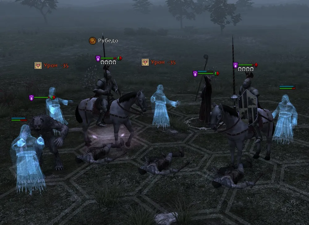 Едва наступает утро, торопимся нанимать бойцов: численность отрядов на этой карте ограничена (всего восемь спутников!), необходимо, чтобы они были сильными. Оставляем соратников в лагере, герой продолжает охотиться на нежить.