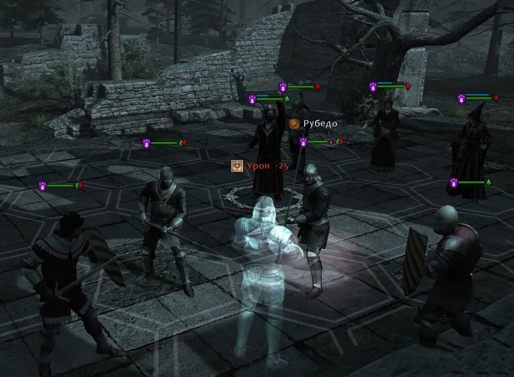 Увы, для ускорения процесса истребления Мистик был вынужден позвать в команду воина с двуручным мечом… Процесс пошёл «гораздо быстрее»: гарнизон из врачевательниц и аколитов сдался после единственного удара двуручника… (Вот на что нужно было обращать пристальное внимание: никаких «Сдач в плен» или «Побегов с поля боя», а не на ограничение числа раундов! Тьфу!)
