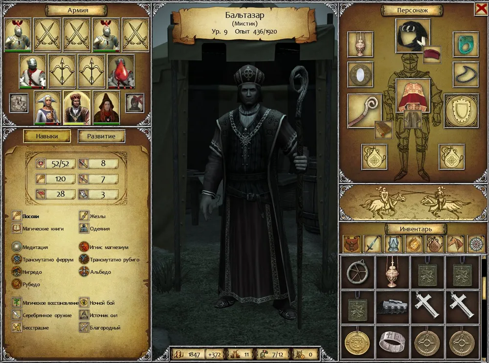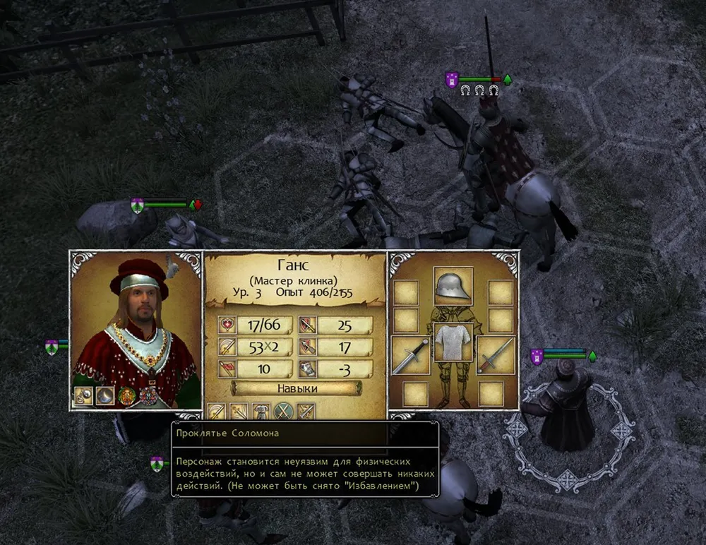 Мистик бодро принялся поджаривать епископов на медленном огне, что шло не так быстро: практически ни одного не удавалось сжечь с первой попытки, иногда – только с трёх; не помогало даже «Рубедо». Я уже прикидывал, сколько опыта получит герой; оставалось только два израненных противника, как вдруг… «Вы проиграли»! Что за чёрт?! Баг, что ли?! Переигрываю – то же самое! Ну конечно, геймдизайнеры наложили ограничение на количество раундов, стремясь сохранить призрачный «баланс». Тысячу раз «чёрт побери»! Много вам встречалось ситуаций, когда бой продолжался больше десяти раундов? До этого момента мне – ни разу. Зачем понадобилось устанавливать ограничитель раундов? Для избегания какой часто встречающейся ситуации? Почему в других играх этого нет? «Игра плохо продаётся!», да.